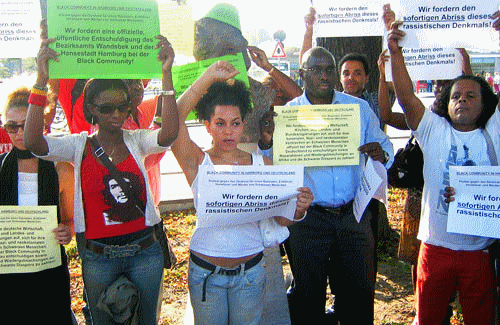 |  Stadtrundgang Wandsbek postkolonial - vom Rathaus über den Schlossgarten zum jüdischen Friedhof Kattunbleiche So 2. Juli 2017 14-16 Uhr Treff: vor der Christuskirche, Schlossstraße 78 (gegenüber U-Bahn/Busbahnhof Wandsbek-Markt)Dauer: ca. 2 Stunden mit Millicent Adjei und Kathrin TreinsTeilnahme: EUR 8, ermäßigt EUR 4Veranstalter: SANKOFA - Altona in der Karibik und Arbeitskreis HAMBURG POSTKOLONIAL Nach heftigen öffentlichen Protesten, insbesondere der Black Community Hamburg, wurde sie nach knapp zwei Jahren verschämt abgebaut: Die Büste des Heinrich Carl Graf von Schimmelmann samt ihrer umstrittenen Texttafel. Der Bezirk Wandsbek hatte die Bronzeplastik 2006 aufgestellt. Es war ein weiterer Versuch des Ausblendens, Verdrängens und Vergessens eines unerfreulichen Aspektes der Stadtteilgeschichte. Wie funktionierte der transatlantische Handel mit versklavten Menschen, der Schimmelmann sehr reich und Wandsbek zu einem florierenden Marktplatz für Baumwolle, Schnaps und Schokolade machte? Zwischen Rathaus, Schlossgarten und dem jüdischen Friedhof Kattunbleiche stoßen wir auf weitere Zeugnisse der kolonialen Vergangenheit und gehen der Frage nach, wie heute mit ihr umgegangen wird.