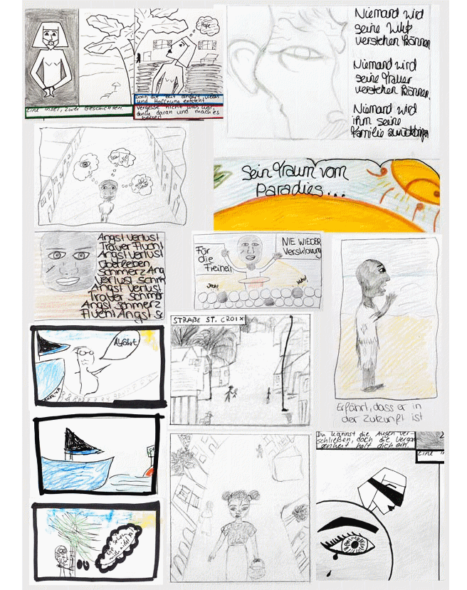 |   terra incognitaComics, graphic novels and short films from the students at the Eidelstedt District School, Class 12c, Art and History Profile   From February to May 2017, the students researched Altona's involvement in the transatlantic enslavement trade. They searched for historic vestiges in urban space and in the Altonaer Museum. In a workshop for Creative Writing, they developed their own ideas and narratives in the form of comics, graphic novels and short films. The project, involving both history and art classes, stood under the guidance of the visual artists Annika Unterburg and Hannimari Jokinen, the art teacher Julia Sonntag, the history teacher Lukas Hilgemann, and Matthias Anton from the Federal Program "Culture Agents for Creative Schools" ("Kulturagenten für Kreative Schulen").